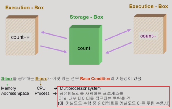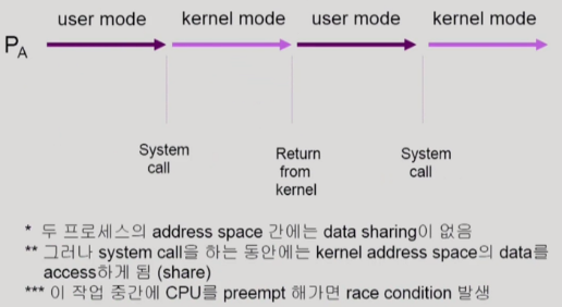 또한 CPU가 1개이더라도 커널에서는 시스템 콜이 여러개가 오게될시 Race Condition이 발생하게 된다.