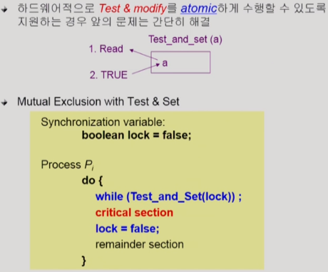 Test_and_set(a)이 지원된다면 코드로 복잡하게 알고리즘을 구현할 필요가 없다.