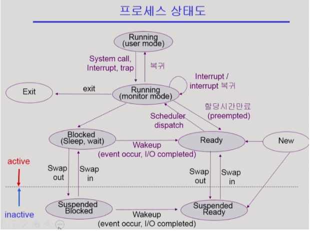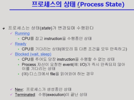 프로세스 상태에 대한 용어(Running, Ready등)는 CPU 입장에서의 용어이다.