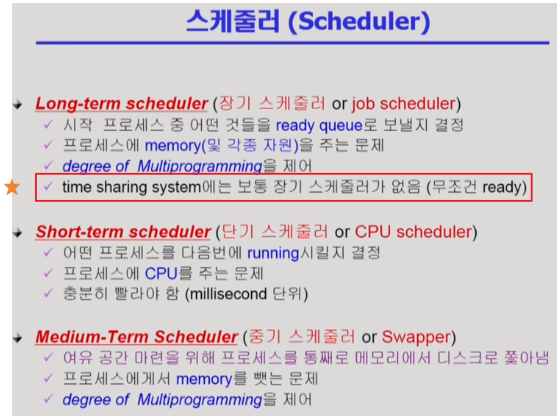 Long-term Scheduler는 메모리를 주는 것, Medium-Term Scheduler는 메모리를 뺏는 것이다.