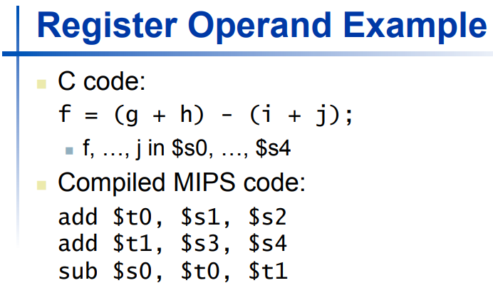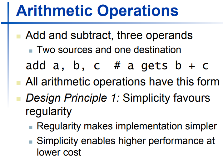 그러나 immediate operands는 3개의 피연산자 중 1개가 상수값을 갖는 것이다.