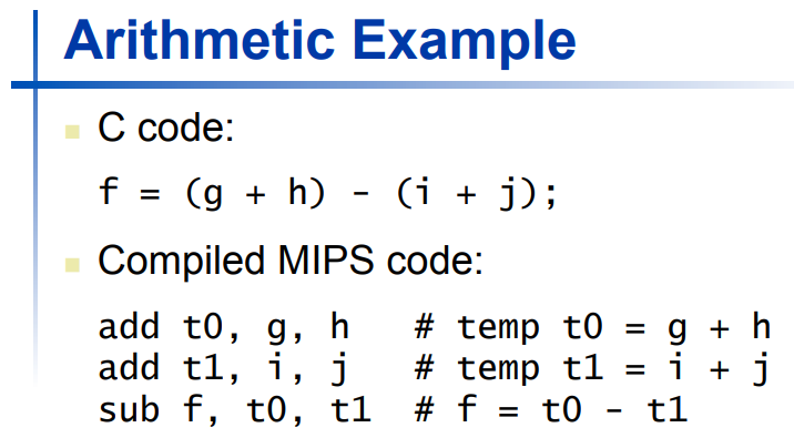 이후 $t0와 $t1을 뺀 다음 $s0에 넣게되며 s0는 f에 맵핑되어 있다.