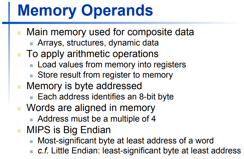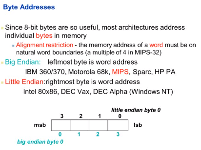 즉, MIPS는 byte단위로 엑세스되며 word단위로 정렬되고 Big endian을 사용한다.