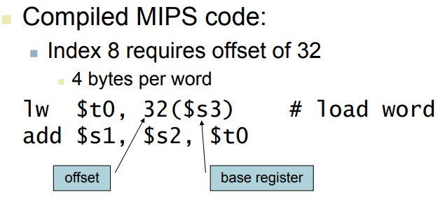 store word는 t0에 있는 값을 해당 시작 주소(48($s3))에 저장하는 것이다.