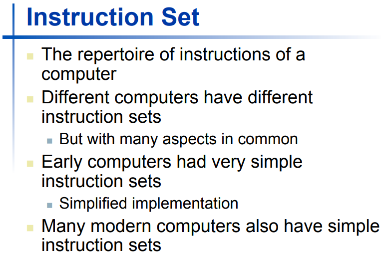 다른 컴퓨터들은 각기 다른 Instruction Set을 가지게 된다.