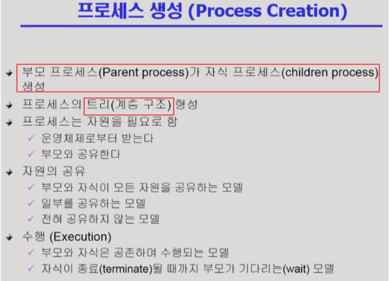 운영체제를 통해서만 프로세스 생성이 가능하다.
