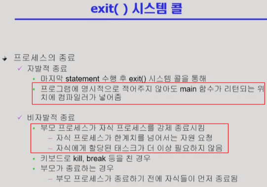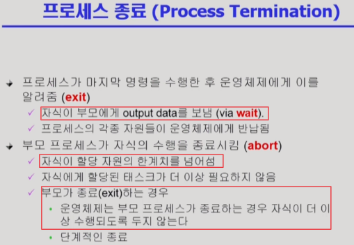 프로세스 종료 시스템콜, 자식이 부모에게 output data를 보내는 자발적 종료abort